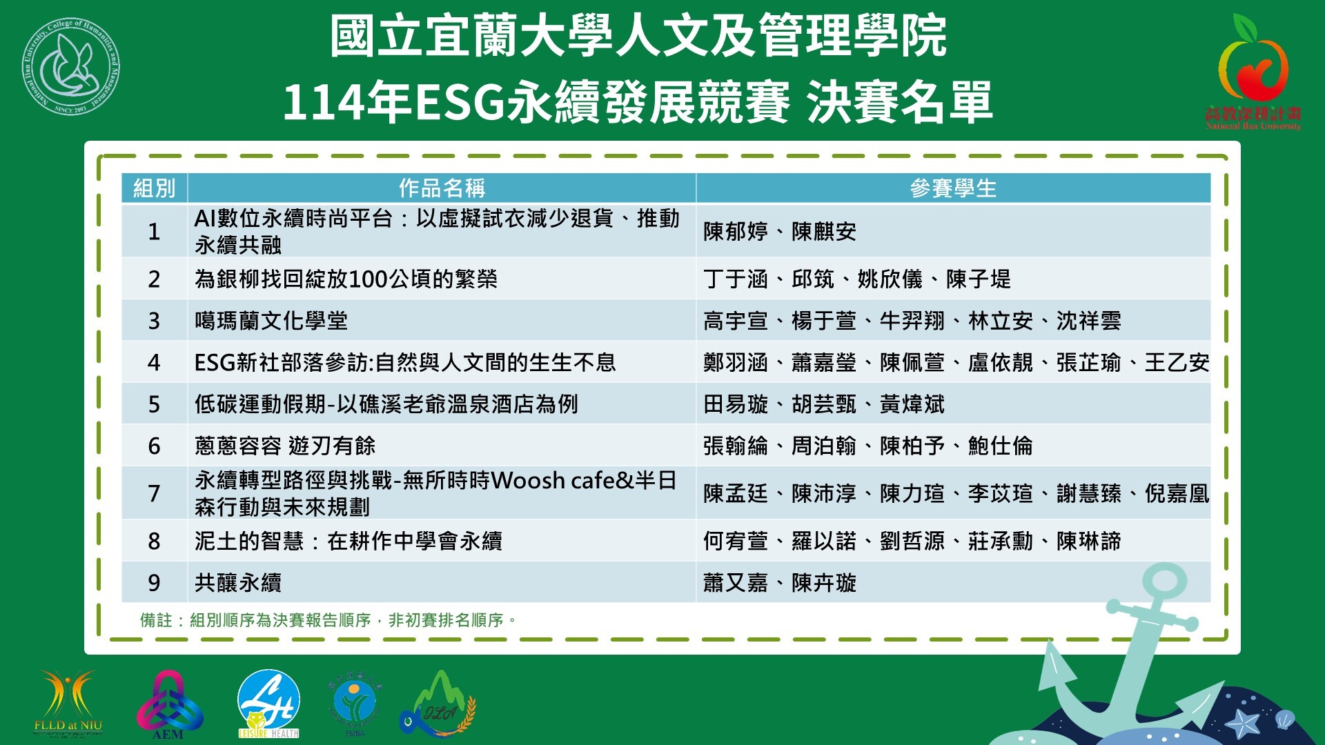 【決賽名單公告】人管院114年ESG永續發展競賽